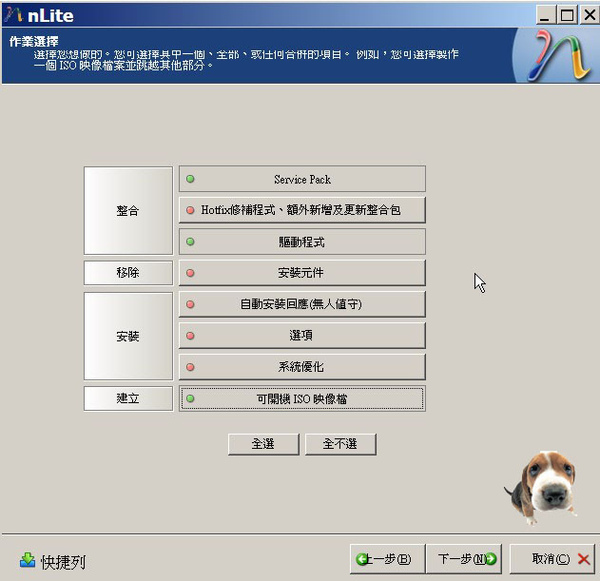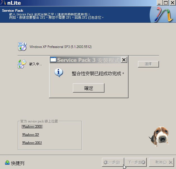 以上第一步驟整合Service Pack完成。(如果不想整合跳過不選也是可以)