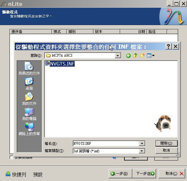 下載的 f6flpy32 解出來的 iaahci.inf 檔案,存放指定資料夾後點確定。