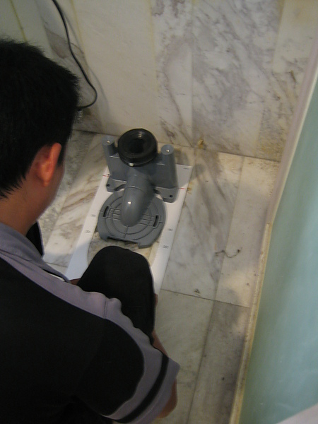 抱歉晃到了將馬桶底座調整固定放在排汙套管上