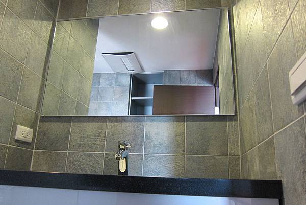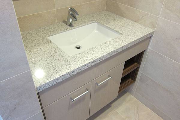 一進浴室右手邊設計LG人造石檯面配合防水浴櫃。