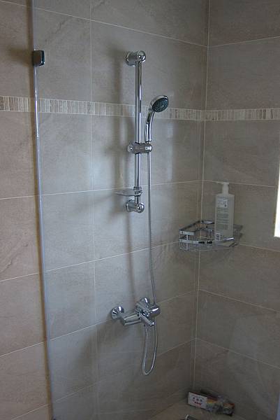 KOHLER淋浴龍頭搭配昇降滑桿及DAY&DAY三角置物籃,可放置沐浴乳及洗法精不在擺到地上到處都是,可盡情想享受淋浴的快感。