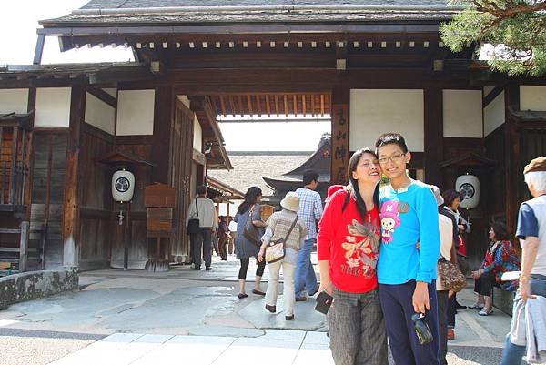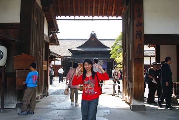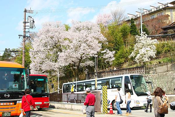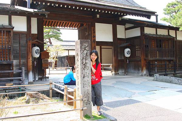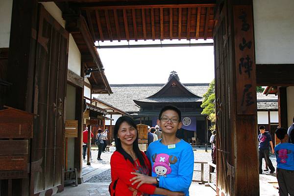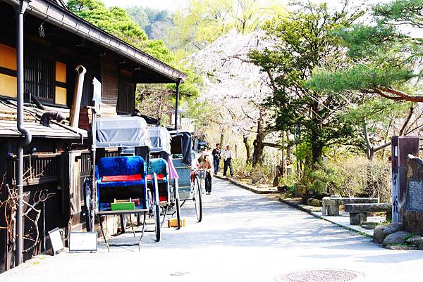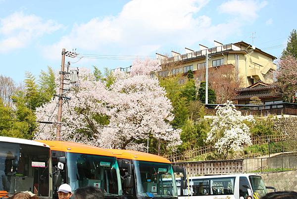 離用餐地點五分鐘的路程我們來到第一站高山陣屋,因為參觀需要另外付費所以我們僅在門口拍照,另一個原因是有更吸引我們的櫻花,在還沒到陣屋前車上已經一陣陣驚嘆的歡呼聲,沿路上已經看見滿開的櫻花樹,聽導遊說上禮拜都還沒開還下雨我們實在太幸運了。