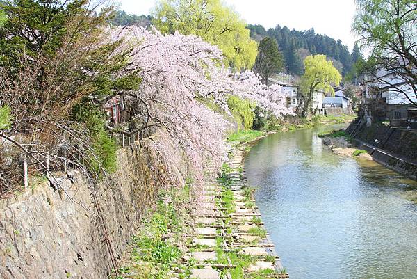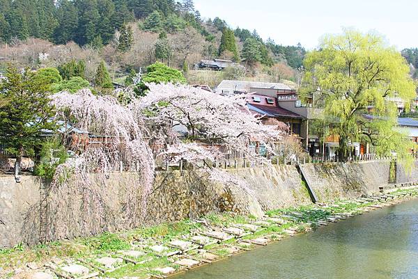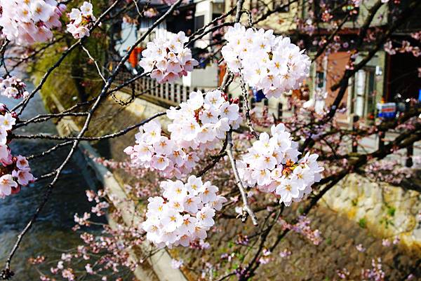 宮川河岸邊上一株株滿開的櫻花,讓宮川清晰的河水點綴一股浪漫的感覺。