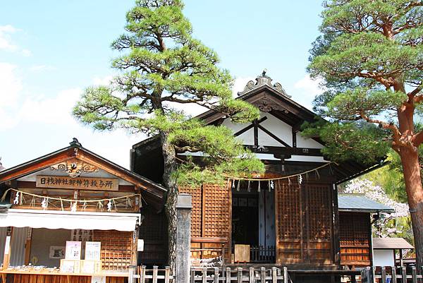日枝神社御旅所兩旁的大松樹襯托出神社的歷史