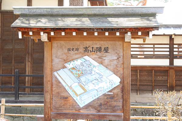 所謂的陣屋,是日本江戶時期的地方官、郡代及代官施政辦公的地方官府,依我們現代的說詞就是綜合了市政府、警察局、消防局、法院的總稱。因為本陣屋位於高山市,所以稱為高山陣屋。
