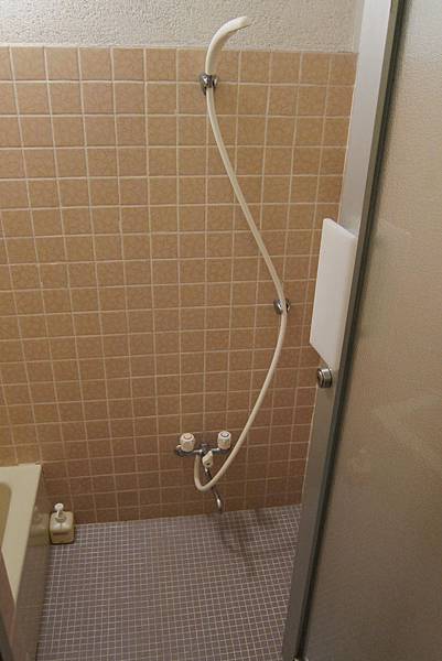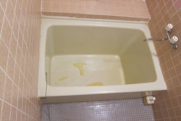 超小座式浴缸泡澡用的還有補過的痕跡,我們不用決定去大澡堂泡溫泉。