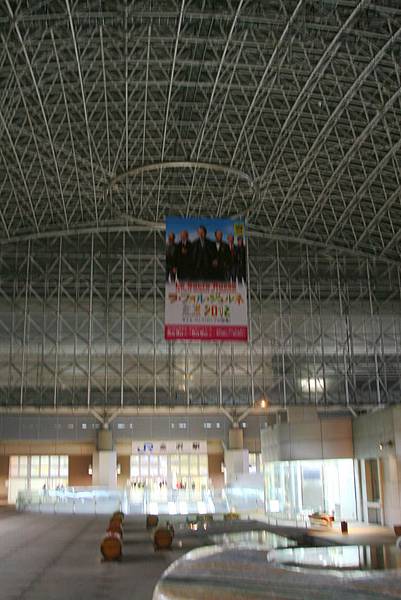 因金澤為多雨的城市,而設計成有如打開一張大傘為客人遮風擋雨的”玻璃巨蛋”