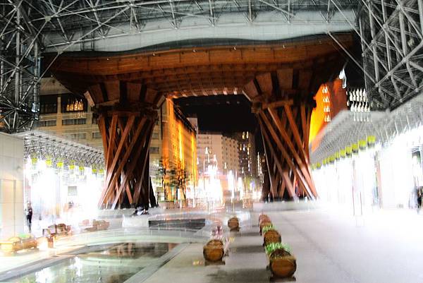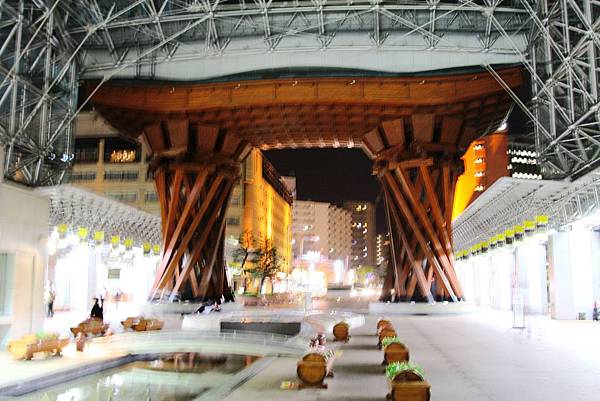 車站東口正面的木造大門『鼓門』以”能樂”大鼓為設計概念的「鼓門」,代表著金澤足以自傲的傳統藝術。