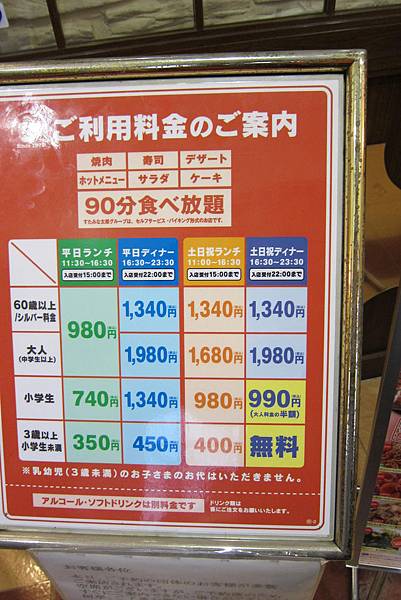 離開立山駅我們前往吃晚餐的地點,今晚用的是日式燒肉吃到飽,第一次在日本吃到像台灣吃到飽的店,燒烤類、生魚片、甜點、飲料通通無限量供應。