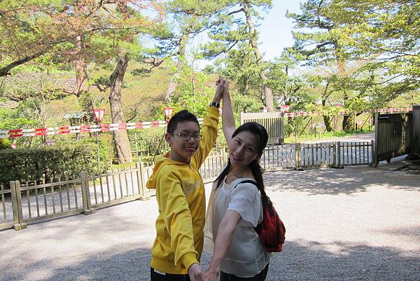 粉紅的櫻花盛開著迎接我們,這是兼六園特別的禮物。