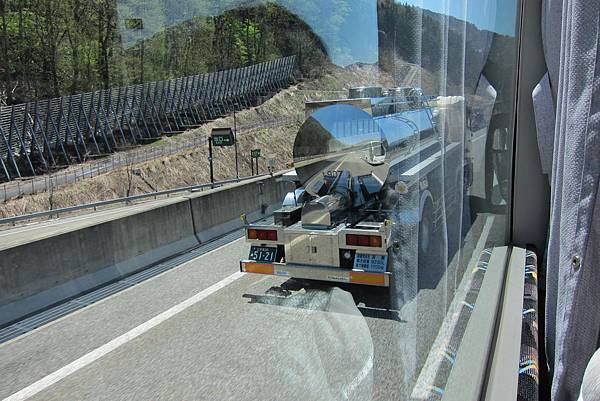 不知道運送什麼的車,全身有如鏡子一樣的亮。