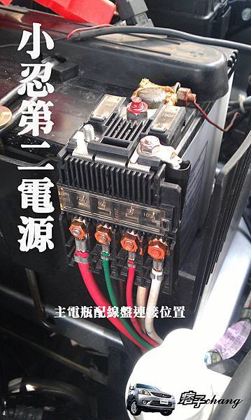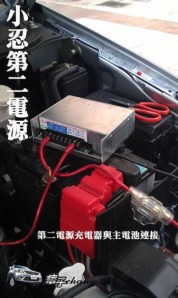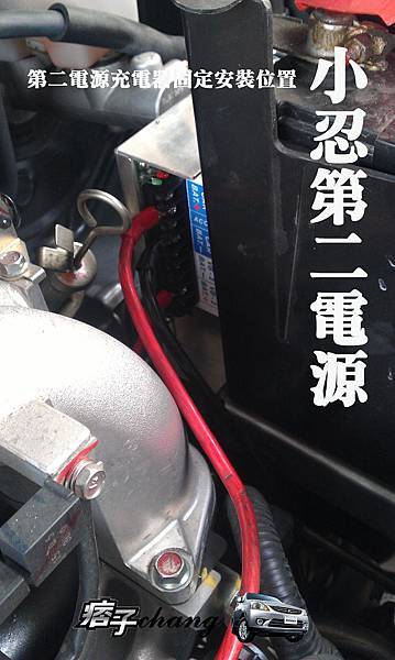 將主電瓶配線盤蓋子打開將正極電線與充電器正極連接記得保險絲不可忘記我是裝30A,我的第二電池是12V 50Ah。