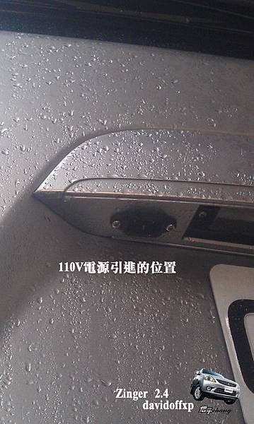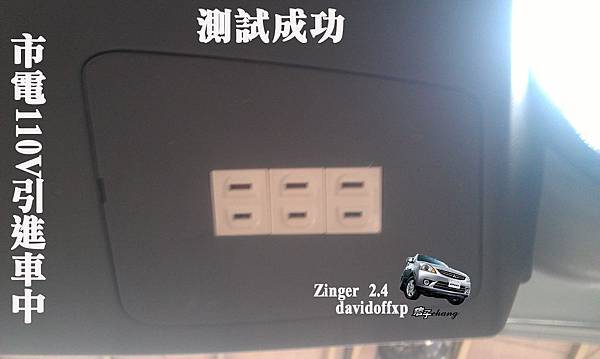 最後將車外接上110V的電源車內接上插座或電器產品及可利用,附帶警語DIY電器請小心電源線銅線部分請勿與車身接觸,避免觸電之危險請做保護措施或請專業人員協助以策安全。